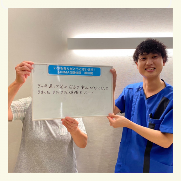 お客様のお声 お客様のお声 こんにちは!KINMAQ整体院 吹田院です😌 お客様からいただいたお声をご紹介いたします🍀「3ヶ月通って足のだるさ、重みがなくなってきました。まだまだ頑張るゾー!」と、ありがたいお言葉をいただきました✨ 足のだるさ、重みが軽減できたこと大変嬉しい限りです。今後も継続して、お身体の根本改善を目指していきましょう!全力でサポートさせていただきますね🌝 この度はKINMAQ整体院にご来院いただき、誠にありがとうございました。
