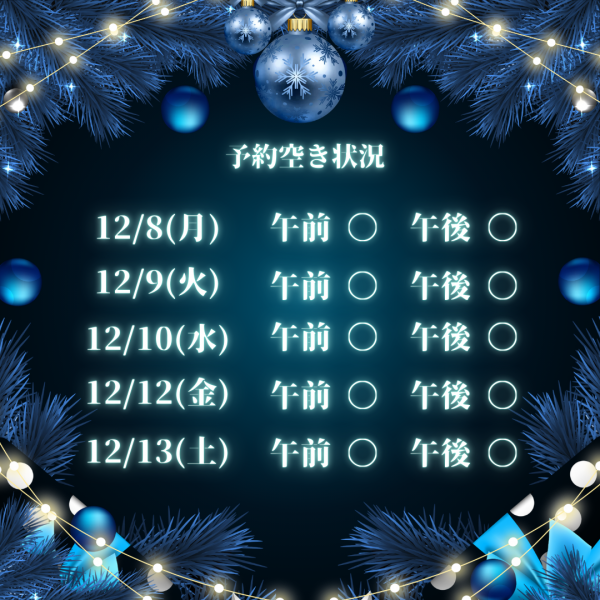 今週の予約空き状況 今週の予約空き状況 こんにちは!KINMAQ整体院 吹田院です❄️ 今年も残り1ヶ月をきりましたね。寒さも本格的になり、年末に向けてお忙しい日々をお過ごしのことと思います。疲れが溜まりやすい時期ですので、体調管理にはくれぐれもお気をつけください🙂↕️ 今週の予約空き状況をお知らせいたします。 今週は予約枠を多めにご用意しております!お身体にお悩みのある方、筋膜にご興味のある方、この機会に当院をお試しください💪 ※予約は先着順となります。